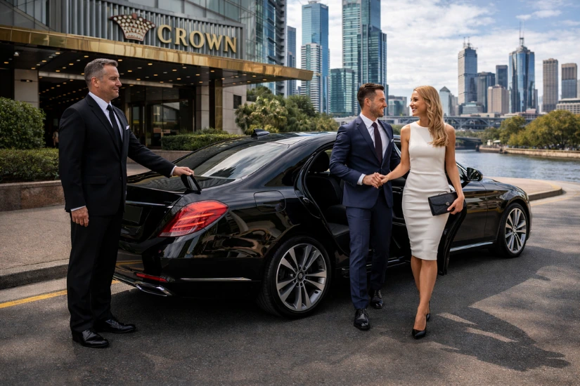 Luxury chauffeur car drop off at Crown Casino Southbank- Melbourne Airport to Southbank